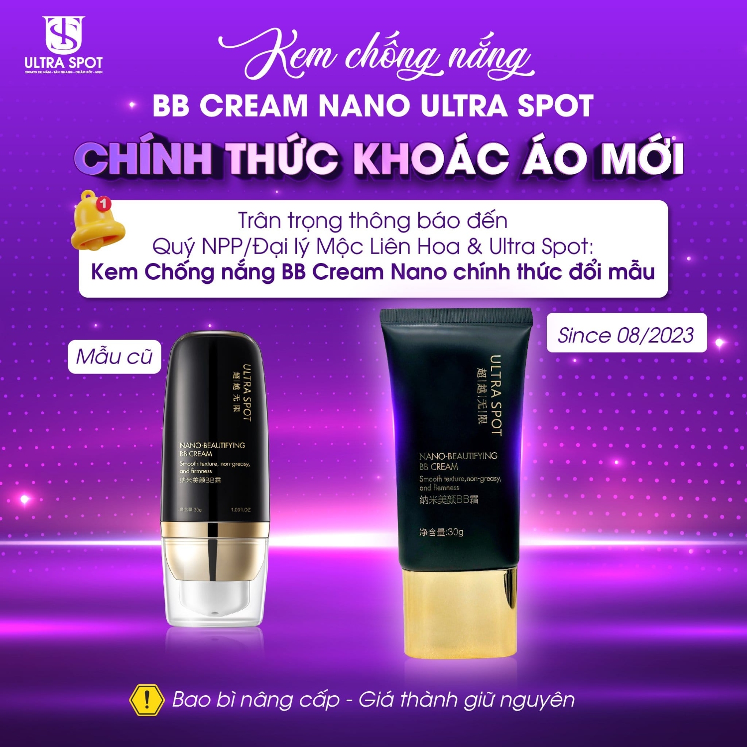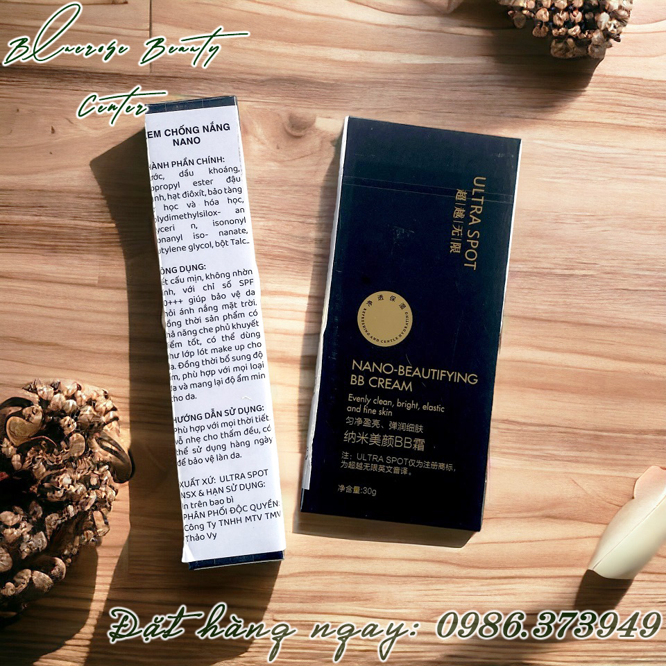 Vừa có tác dụng vật lý ngăn chặn sự tác động của tia UVA/UVB trên làn da, vừa có tác dụng hóa học tạo nên phản ứng hòa tan các tác nhân của tia bức xạ từ ánh nắng mặt trời. Với chỉ số SPF 50 vừa phải và chỉ số PA+++ hoàn toàn có thể bảo vệ làn da trong suốt thời gian dài lên đến 8 giờ liên tục. Sản phẩm hoàn toàn không thấm nước lại lên màu da như lớp kem nền, vừa bảo vệ da vừa làm đẹp. Ngoài ra, kem chống nắng Nano còn là 1 lớp kem nền mỏng nhẹ, chỉ cần thoa 1 lớp mỏng mỗi khi ra ngoài, đồng thời BB Cream Nano Ultra Spot còn giúp che đi các khuyết điểm và bảo vệ da khỏi tia UVA/UVB khi tiếp xúc với ánh nắng mặt trời. KEM CHỐNG NẮNG ULTRA SPOT NANO BEAUTIFYING BB CREAM - Tuýp 30gr - Xuất xứ: Ultra Spot Hồng Kông - Mã vạch: 6972217844248 4897111391730 Giá lẻ: 1.050.000đ/tuýp