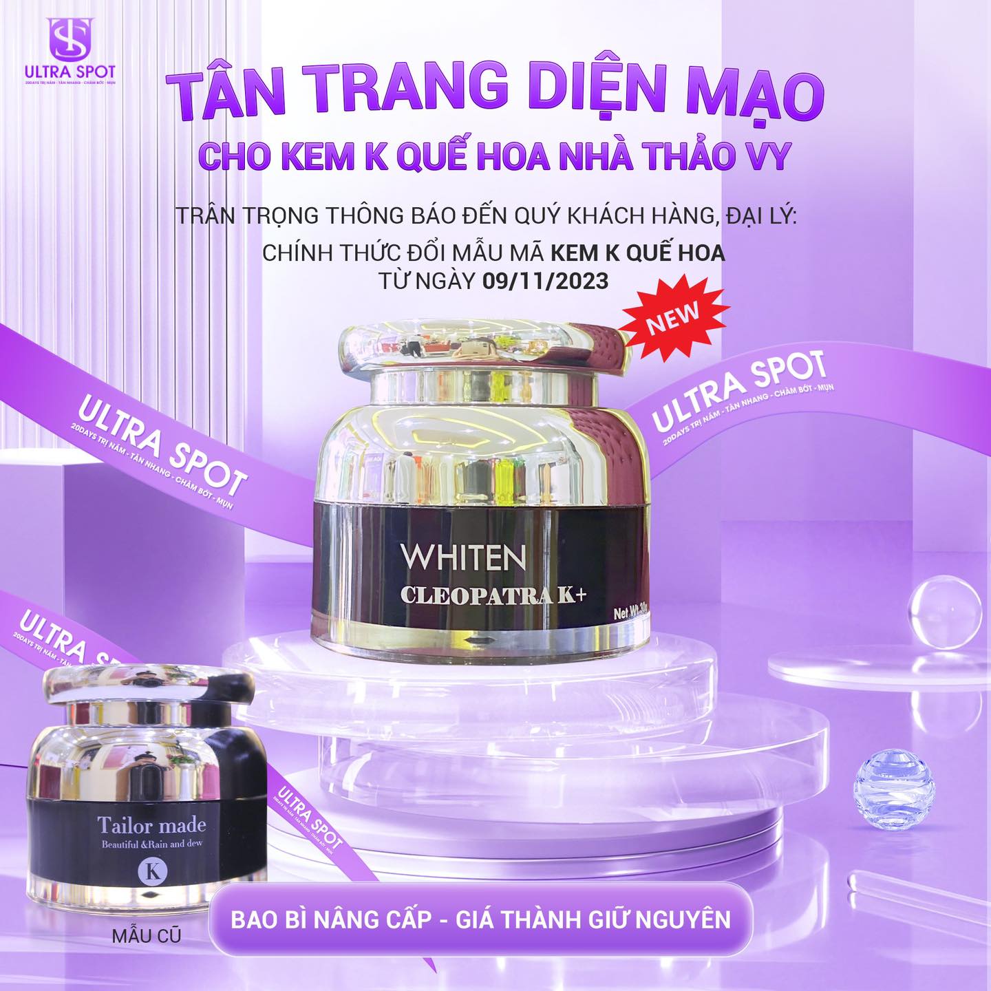 KEM QUẾ HOA WHITEN CLEOPATRA K+ (TAILOR MADE K MẪU MỚI)
